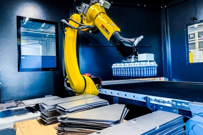 Die Roboterzelle belädt die Entgratmaschine von LISSMAC vollautomatisch.Bild: J. Schmalz GmbH
