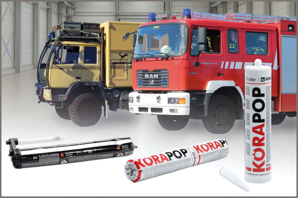 Wenn jeder Handgriff sitzen muss, braucht man Klebstofflösungen, die Prozesssicherheit und Schnelligkeit vereinen. Im Sonderfahrzeugbau, wo Fahrzeuge nach Maß gebaut werden, entscheiden oft Sekunden über Effizienz, Qualität und Wirtschaftlichkeit. Kurze Taktzeiten, hohe Variantenvielfalt und komplexe Materialkombinationen stellen hohe Anforderungen an den Fertigungsprozess. Die Erfüllung rechtlicher Normen ist ein weiterer Aspekt, der insbesondere bei sicherheitsrelevanten Fahrzeugen wie Feuerwehr-, Polizei-, Rettungs-, Schienen-, Nutz-, Militär- oder Expeditionsfahrzeugen eine wichtige Rolle spielt, da diese strengen Qualitäts- und Prüfpflichten unterliegen. Die RUDERER KLEBETECHNIK GmbH bietet speziell für den Sonderfahrzeugbau eine breite Palette an Hochleistungsklebstoffen, die Fertigungsprozesse nicht nur beschleunigen, sondern auch dauerhaft sicherer und effizienter machen. Zwei Spezialklebstoffe haben sich im Sonderfahrzeugbau besonders bewährt: KÖRAPOP 240 und KÖRAPOP 225. Diese modernen Hochleistungsklebstoffe stammen aus der KÖRAPOP-Serie des Traditionsunternehmens Kömmerling, welches seit 2017 zum global agierenden Konzern H.B. Fuller gehört. Sie eignen sich perfekt zum elastischen Kleben und Abdichten von Abdeckungen, Bodenplatten, Innen- und Außenverkleidungen sowie Dachaufbauten. Da die Klebstoffe die hohen Anforderungen im Sonderfahrzeugbau in Bezug auf Belastbarkeit, Festigkeit, Dichtigkeit, Vibrationstoleranz, Temperatur- und Feuchtigkeitsbeständigkeit erfüllen, profitieren Anwender von maximaler Planungs- und Gestaltungsfreiheit bei gleichzeitig hoher Prozesssicherheit. Aber auch der Hochleistungsklebstoff SIKAFLEX-268 PowerCure des Schweizer Klebstoffherstellers SIKA wird erfolgreich im Sonderfahrzeugbau eingesetzt. SIKAFLEX-268 PowerCure wurde mit einem Booster-System entwickelt, sodass der Klebstoff – unabhängig von den Umgebungsbedingungen – wesentlich schneller aushärtet als herkömmliche Klebstoffe. In welchen Bereichen dieser innovative Klebstoff eingesetzt wird und warum Klebstoffe wie SIKAFLEX und KÖRAPOP aus der modernen Sonderfahrzeugfertigung heutzutage nicht mehr wegzudenken sind, erfahren Sie nachfolgend.