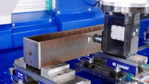 Das Portalfräszentrum PFZ Ultimate ermöglicht eine 5-Seiten-Bearbeitung von Langteilen aus Stahl, Edelstahl und Aluminium ohne Umspannen, sowohl bei Bohr- als auch Fräsvorgängen. Bild: Röder