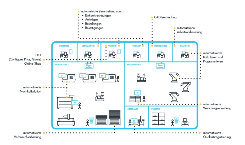 • Digitale Produktionsplanung: Papierlose Arbeitsvorbereitung, bei der CAD/CAM und spezialisierte ERP- und Produktionsplanungssysteme nahtlos in die zentrale Werkzeugverwaltung integriert sind. Dies eliminiert Fehler, minimiert die Vorbereitungszeit, optimiert die Fertigungsvorbereitung und gewährleistet damit Kontinuität.