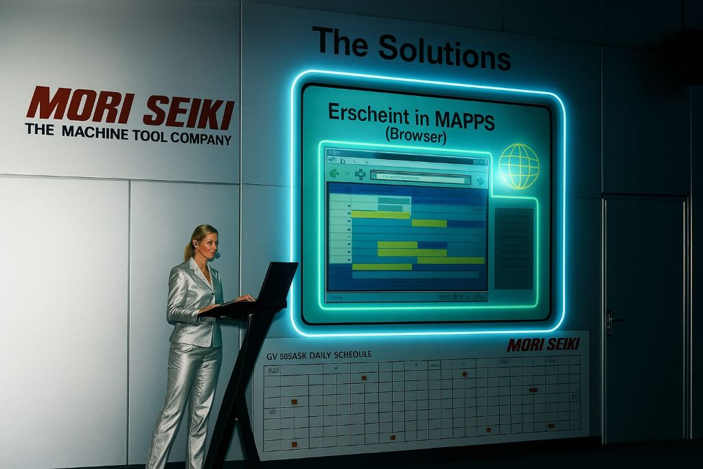 Mit leuchtenden Augen sehen sich die Produktions-Fachleute Computerlösungen aus Fernost oder USA an, es herrscht aber lange bremsende Skepsis: Zu ihnen zähle auch ich. Bei meinem ersten EMO-Besuch 1987 in Mailand lerne ich als Fachredakteur Hightech aus Fernost kennen: Mitsubishi präsentiert ein CNC-System, das angeblich fünfmal schneller als herkömmliche 16-bit Systeme arbeitet und dank künstlicher Intelligenz sogar die Bearbeitung automatisch optimiert. Für mich als schreibenden Ingenieur beginnt eine neue Ära, die ich in der Fachpresse als „CIMsalabim“ bezeichne – eine augenzwinkernde Anspielung auf das „Computer Integrated Manufacturing“ (CIM), bei dem Roboter, Werkzeugmaschinen, Fließbänder, Messplätze und Computer zu einer rechnerintegrierten Fabrik verschmelzen.