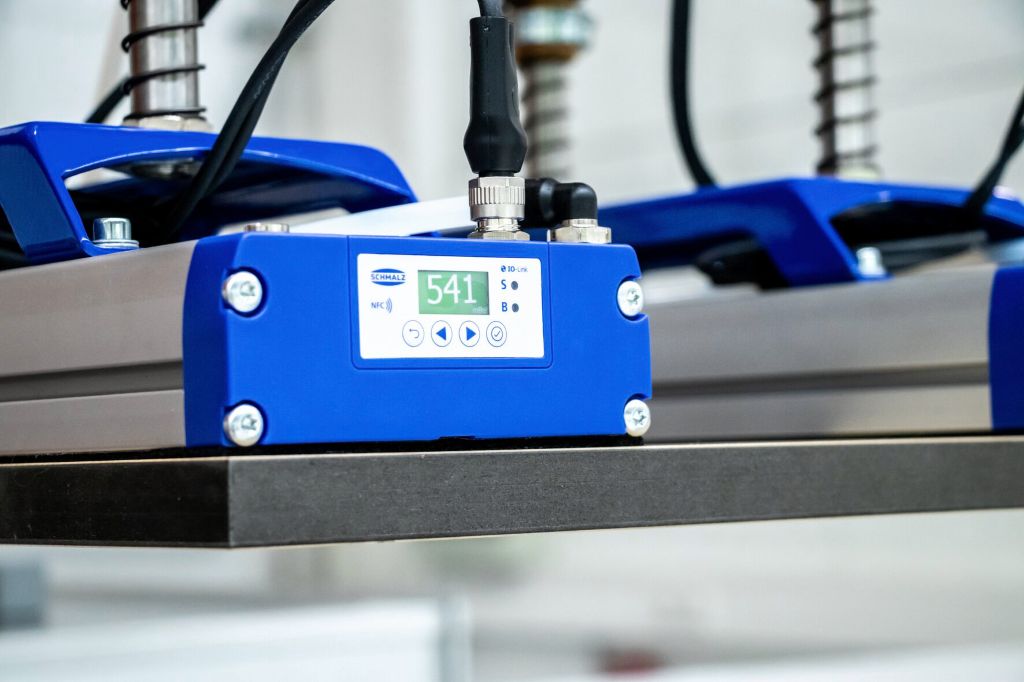 Die Sparfunktion reduziert den Energieeinsatz um bis zu 80 Prozent, weil sich einzelne Düsenstränge gezielt schalten lassen. Das verringert nicht nur die Betriebsausgaben, sondern schont auch Ressourcen. Stillstandszeiten kosten Geld. Deshalb setzt Schmalz auf einfache Wartung: Anwender tauschen den Dichtschaum dank Schnellwechsel-Klebefolie in wenigen Minuten aus. Der Ejektor ist leicht zugänglich. Optional erkennt eine integrierte Sensorik im Dichtschaum, ob das Werkstück korrekt gegriffen wurde – das erhöht die Prozesssicherheit und minimiert den Ausschuss.