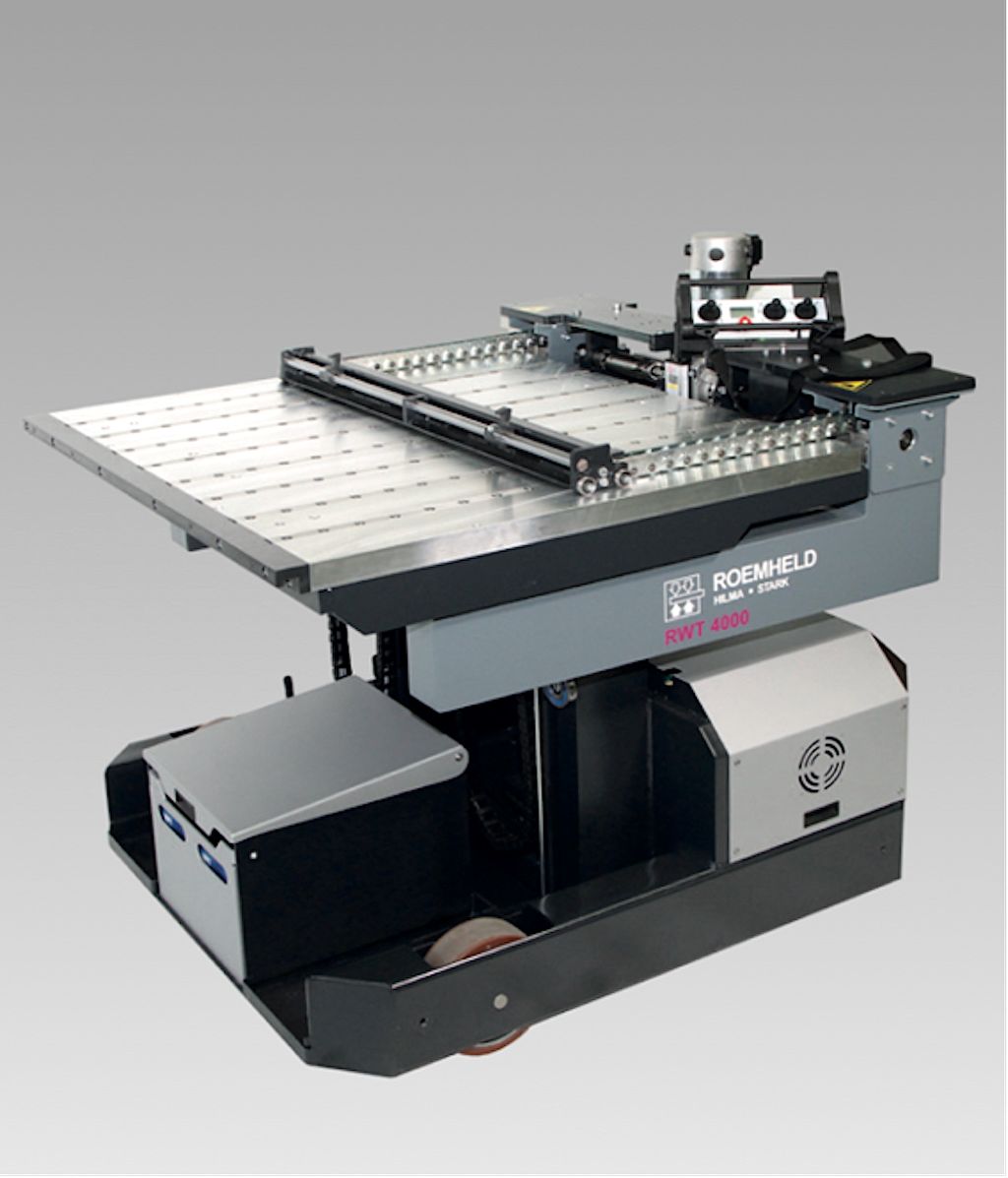 Für besonders schwere Lasten stellt ROEMHELD auf der Messe den neuen Werkzeug-Wechselwagen RWT vor. Das Elektrofahrzeug mit Funkfernsteuerung für das ergonomische Werkzeug-Handling von Lasten bis 4.000 kg ist eine vollintegrierte Transportlösung.