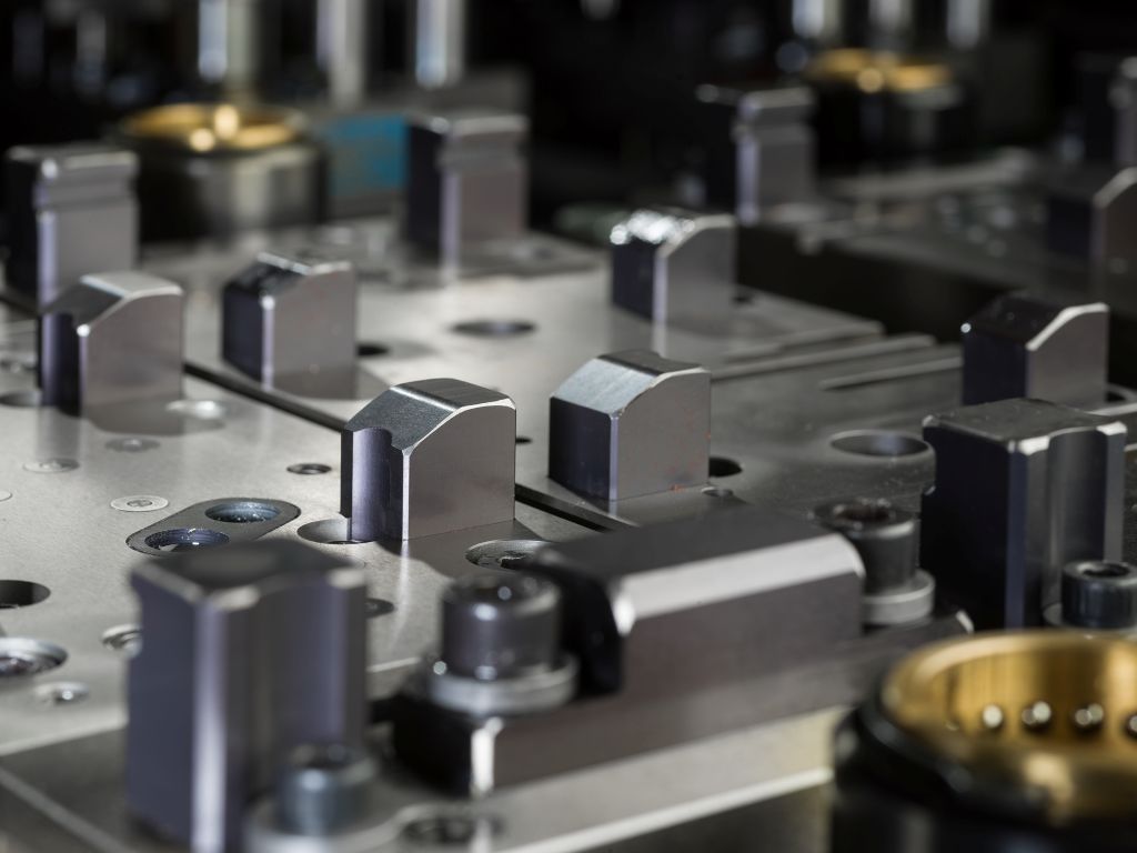 Bei Winkhaus werden Beschläge-Teile rund um die Uhr produziert. Höhere Standzeiten resultieren deshalb in deutlichen Effizienzgewinnen. Im Bild: mit BALINIT ALCRONA EVO beschichtete Umformstempel. / Foto: Oerlikon Balzers