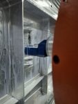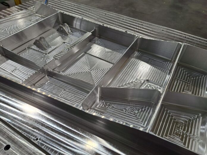 Der OptiMill-Alu-Wave wurde bei 29.000 Umdrehungen, einer Schnitttiefe von 48 mm und einem Vorschub von 12 m/min in der Spitze gefahren. Der größere NeoMill-Alu-QBig erreichte bei 10 mm Schnitttiefe einen Vorschub von über 25 m/min. Allein in den ersten 55 Minuten der Bearbeitung der zweiten Aufspannung wurden 425 kg Aluminium zerspant, in der Spitze kam man auf ein Spänevolumen von mehr als 14 l/min.