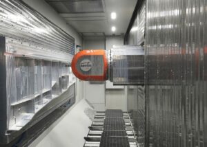 Blick in den Arbeitsraum der bavius AeroCell 160 | 400. Hier werden in der zweiten Aufspannung die Taschen gefräst und weitere Merkmale herausgearbeitet. ©Mapal