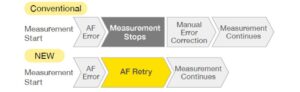 Der verbesserte Laser AF Retry gewährleistet einen kontinuierlichen Betrieb ohne Bedienereingriff – ideal für lange, unbeaufsichtigte Messläufe. • Schnellere Höhen und Suchmessungen