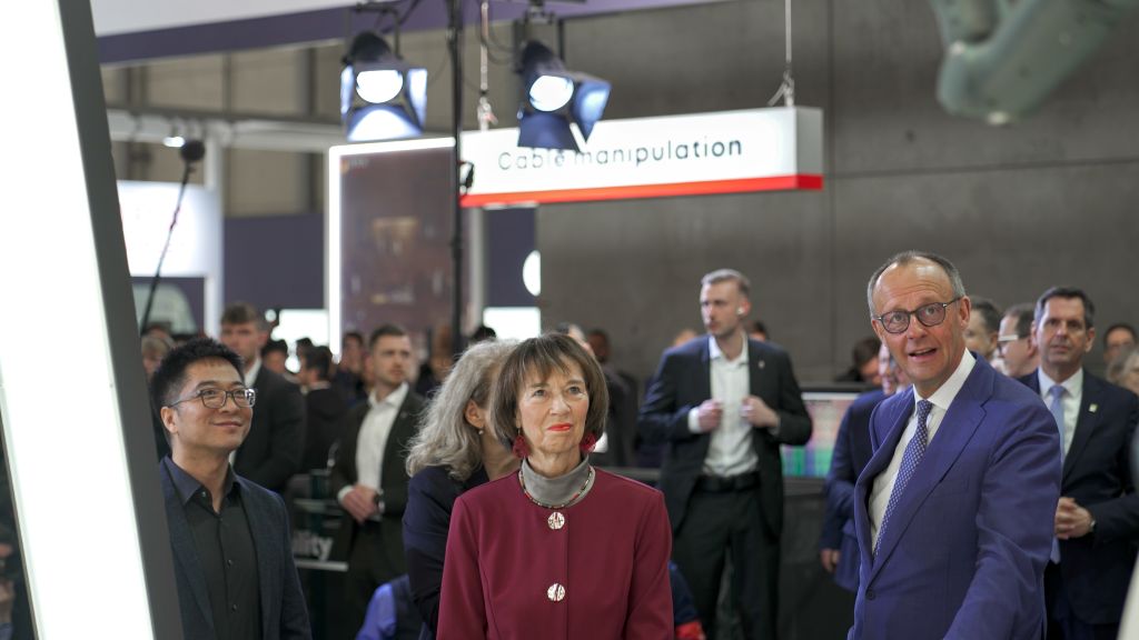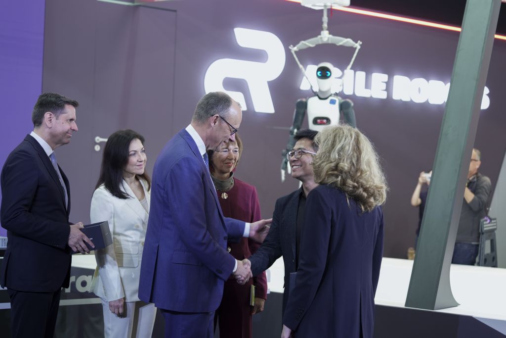 Bundeskanzler Friedrich Merz und Wirtschaftsministerin Katherina Reiche am Stand von Agile Robots ©Agile Robotics